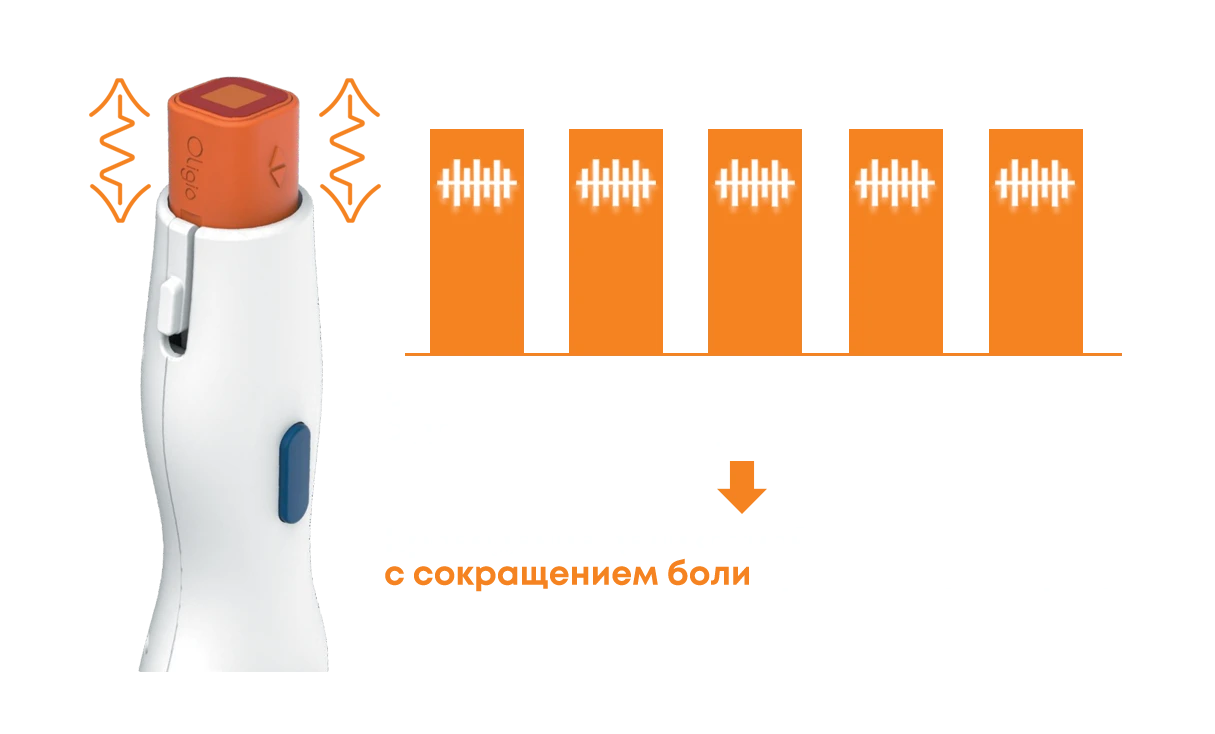 Контроль Оптимального Алгоритма Импульса: при использовании трех режимов подачи импульса Oligio снижает до минимума чувство боли и побочные эффекты, а также обеспечивает безопасное и эффективное лечение.