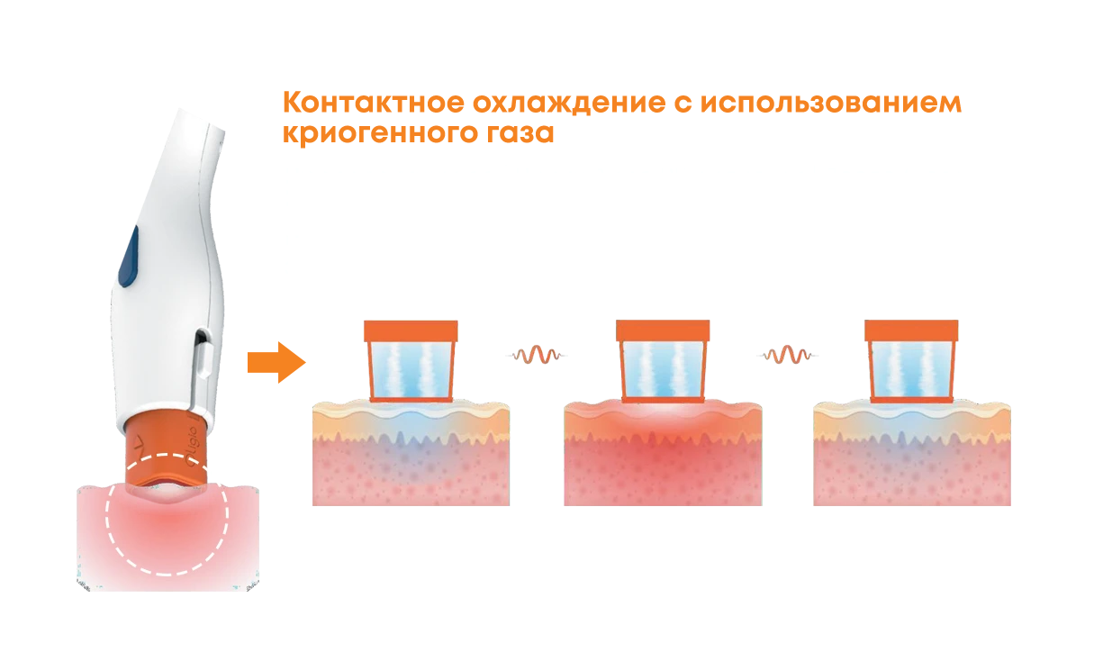 Без боли Газовое криогенное охлаждение и функции вибрации сокращают до минимума неприятные ощущения |